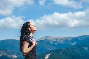 Long hair brunette girl on the top of the mountain enjoying fresh air[/caption]Mouth Breathing Correction